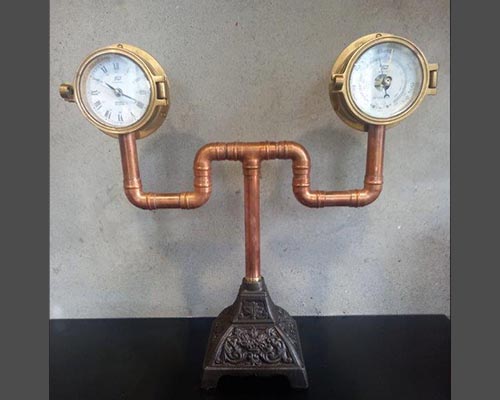 Steampunk clock and barometer on oil lamp base