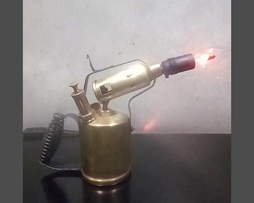 Antique oil can with flickering candle light