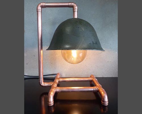 Steampunk lamp with British army helmet lampshade